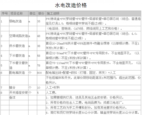 2013年水電改造價(jià)格 最新最全的裝修報(bào)價(jià)單