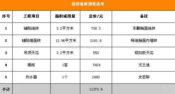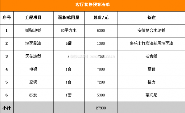 下圖是整個(gè)房間的總體裝修費(fèi)用。