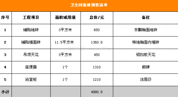 衛(wèi)生間的裝修預(yù)算和廚房的裝修預(yù)算如下: