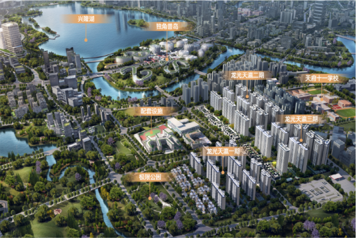 項(xiàng)目位于科學(xué)城板塊興隆湖畔,受土地規(guī)劃限制,興隆湖周邊涉宅用地占比僅約10%。2020年,龍光以總價(jià)9.1億元競(jìng)得天府新區(qū)70.4畝優(yōu)質(zhì)地塊,打造龍光·天瀛一期。2021年,龍光持續(xù)發(fā)力,分別以10.93億元+45%自持以及7.49億元+36%自持競(jìng)得興隆湖63畝、38畝兩宗連襟地塊,打造龍光·天瀛二期、三期?!?/p>