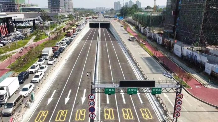 該工程于2019年10月開工建設,是成都市委市政府的重大民生工程之一,也是連接成自瀘高速成都收費站與三環(huán)路的重要道路,項目全長約1363米,下穿隧道全長約1097米。下穿隧道為雙向六車道,輔道為雙向四車道,設計時速60公里/時。