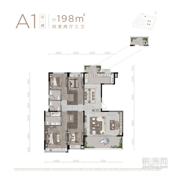 人居麓湖林語(yǔ)A1戶型(4室2廳,198平,南)