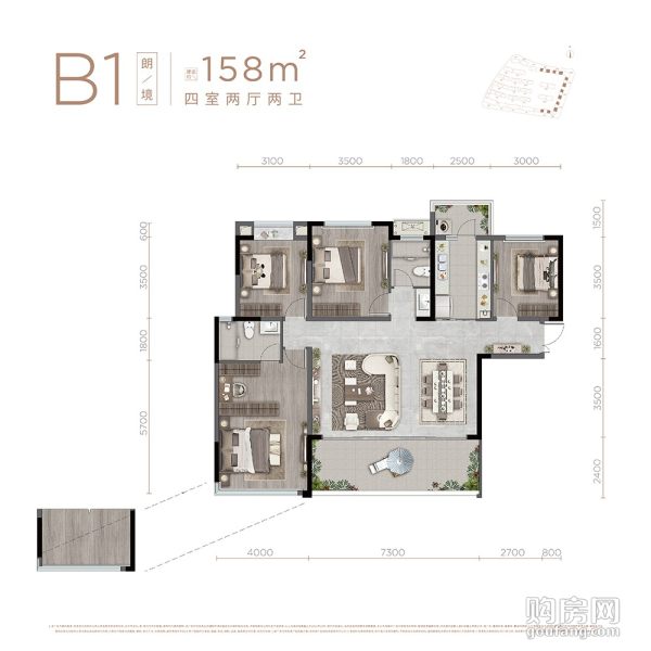 人居麓湖林語(yǔ)B1戶型(4室2廳,158平,南)