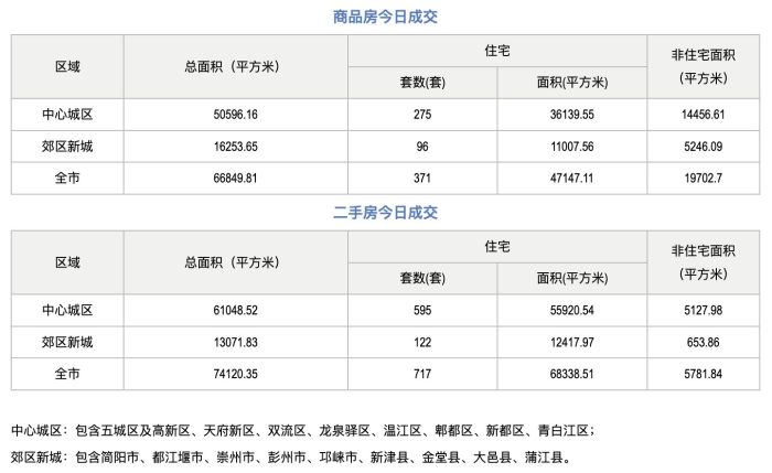 8月1日, 成都市住建局住建蓉e辦數(shù)據(jù)顯示,成都市全市商品房成交(備案)總面積66849.81平方米,其中其中商品住宅成交(備案)371套,商品住宅成交(備案)面積47147.11平方米。二手房成交(備案)總面積74120.35平方米,其中二手住宅成交備案717套,二手住宅成交(備案)面積68338.51平方米。