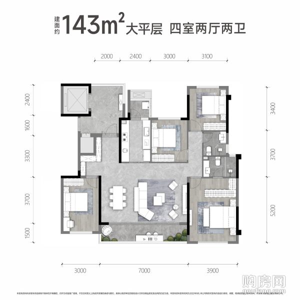 龍湖御湖境143戶型(4室2廳,143平,南)