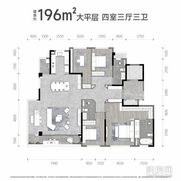 龍湖御湖境196戶型(4室3廳,196平,南)