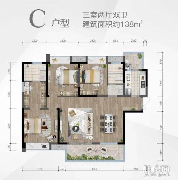 3室2廳2衛(wèi),A2(2室2廳,112平,南)