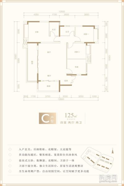 C戶型(4室2廳,125平,南北)