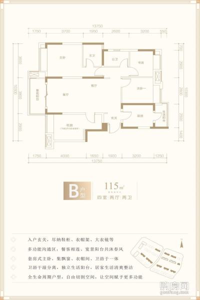 B戶型(4室2廳,115平,南北)