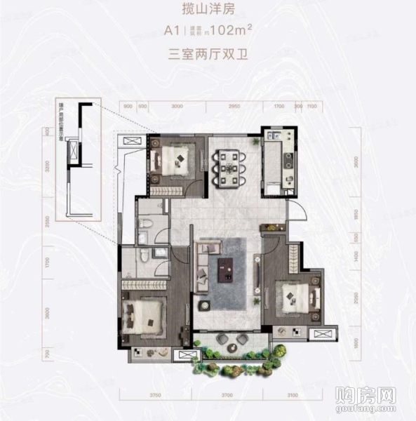 天府萬科城A1戶型(3室2廳,102平,南北)
