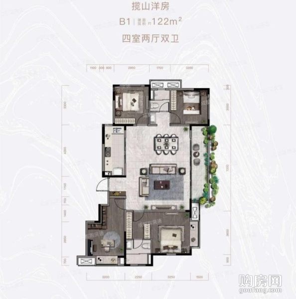 天府萬科城B1戶型(4室2廳,122平,南北)
