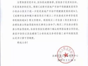公告內(nèi)容:為貫徹落實(shí)黨中央、國(guó)務(wù)院決策部署,堅(jiān)持房子是用來住的、不是用來炒的定位,根據(jù)《成都市房地產(chǎn)市場(chǎng)平穩(wěn)健康發(fā)展領(lǐng)導(dǎo)小組辦公室關(guān)于進(jìn)一步促進(jìn)房地產(chǎn)市場(chǎng)平穩(wěn)健康發(fā)展的通知》《成都市住房和城鄉(xiāng)建設(shè)局關(guān)于建立二手住房成交參考價(jià)格發(fā)布機(jī)制的通知》等文件精神,現(xiàn)將購(gòu)買二手住房(再交易住房)辦理住房公積金貸款的相關(guān)事項(xiàng)公告如下:購(gòu)買二手住房辦理住房公積金貸款的,住房?jī)r(jià)值按住建部門確認(rèn)的網(wǎng)簽備案合同價(jià)款、房屋評(píng)估價(jià)以及住建部門公布的成交參考價(jià)格三者中的最低值認(rèn)定并計(jì)算可貸額度。