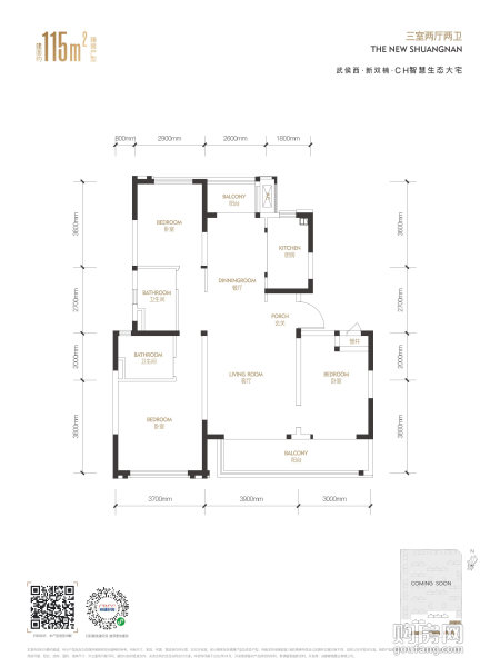 中國鐵建雙楠樾府-建面約115平戶型(3室2廳,115平,南北)