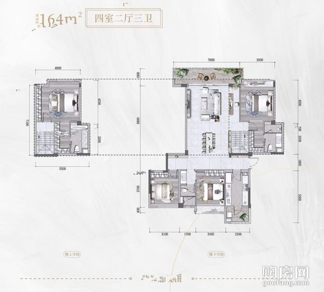 中建錦瀾壹號(hào)-瀾逸建面約164㎡戶型(4室2廳,164平,南北)