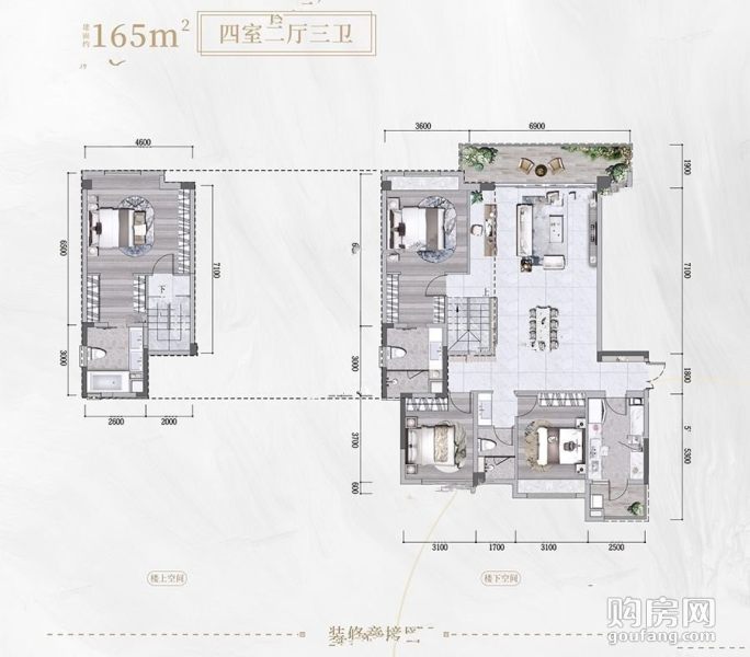 中建錦瀾壹號(hào)-瀾和建面約165㎡戶型(4室2廳,165平,南北)