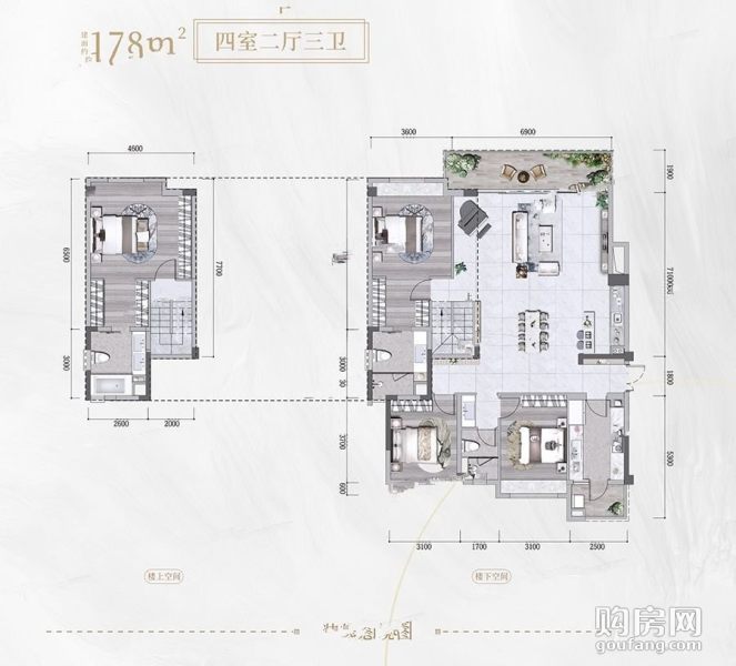 中建錦瀾壹號(hào)-瀾樾建面約178㎡戶型(4室2廳,178平,南北)