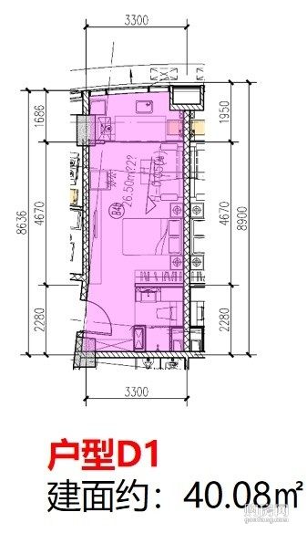 1室0廳1衛(wèi),(公寓)(1室,40.08平,南)