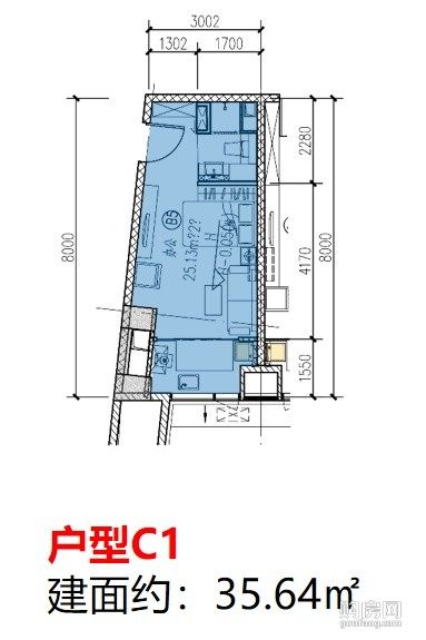 1室0廳1衛(wèi),(公寓)(1室,35.64平,南)