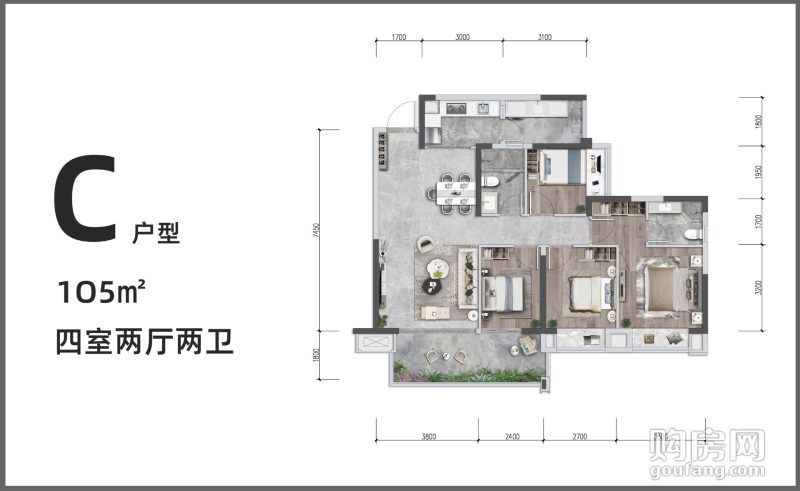 通威世地長(zhǎng)灣C戶型 (4室2廳,105平,南)