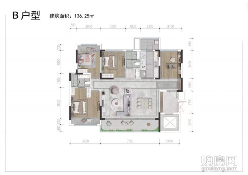 城投藝墅語(yǔ)湖B戶型(4室2廳,136.25平,南北)