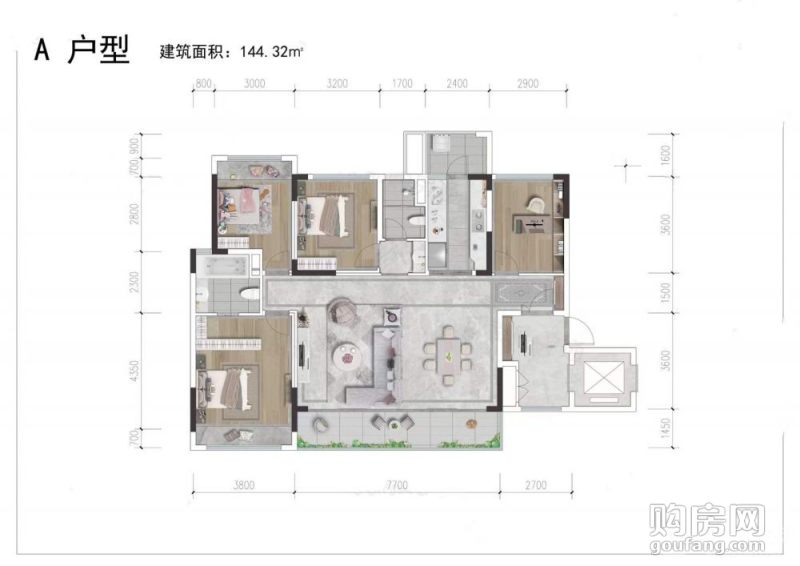 城投藝墅語(yǔ)湖A戶型(4室2廳,144.32平,南北)