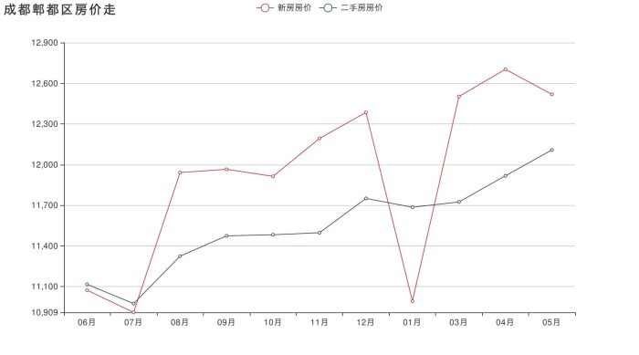 一個城市的多個區(qū)域房價往往趨于穩(wěn)定,了解其平均水平可以方便我們對該地樓市做出判斷。根據購房網樓盤數據顯示,6月成都郫都區(qū)的住房一級市場平均價格是12193元/㎡,與上月對比,環(huán)比上漲2.35%。值得一提的是,當期的郫都區(qū)在售樓盤還能達到95套,這可以說是比較穩(wěn)定的。成都郫都區(qū)二手房的市場一直處于繁榮狀態(tài),價格也相對比較穩(wěn)定。本月,郫都區(qū)二手房均價達11497元/㎡,相比上月上漲0.13%,盡管相差不是特別大,但是二手房價水平還是比較高的。本月在銷售的二手房源共有1個,近新增上架存量房1個。