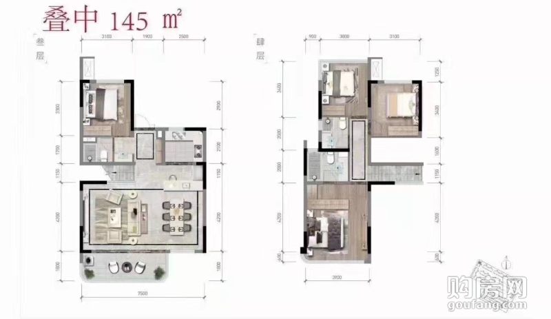 領(lǐng)地悅府-中疊戶型(4室3廳,145平,南北)