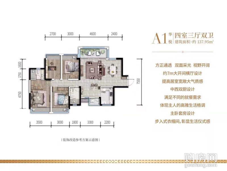領(lǐng)地悅府A1戶型(4室3廳,139.55平,南北)