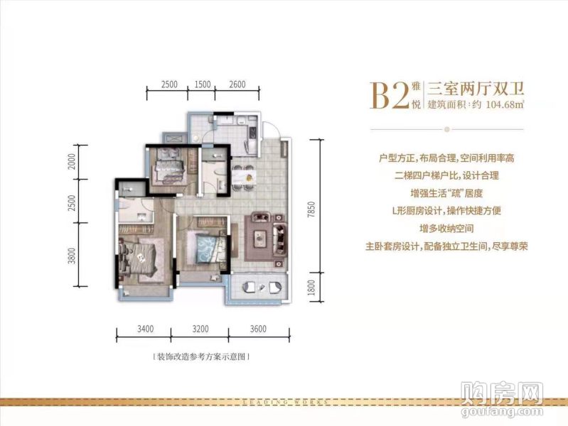 領(lǐng)地悅府B2戶型(3室2廳,106.32平,南)