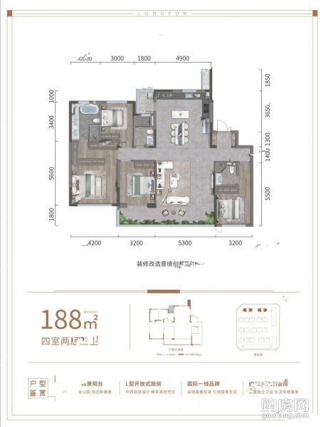 龍湖光年4室戶(hù)型圖120-188㎡(4室2廳,188平,南)